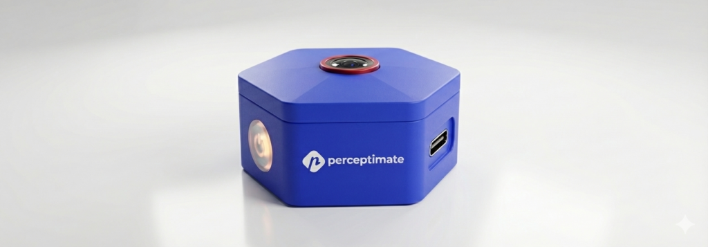 Ausgestattet mit ESP32-Chips, Custom Platine, 5MP Kamera-Sensor und diversen Schnittstellen, verursacht perceptimate®, im Vergleich zu aktuell verfügbaren Lösungen, signifikant geringere Hardwarekosten.